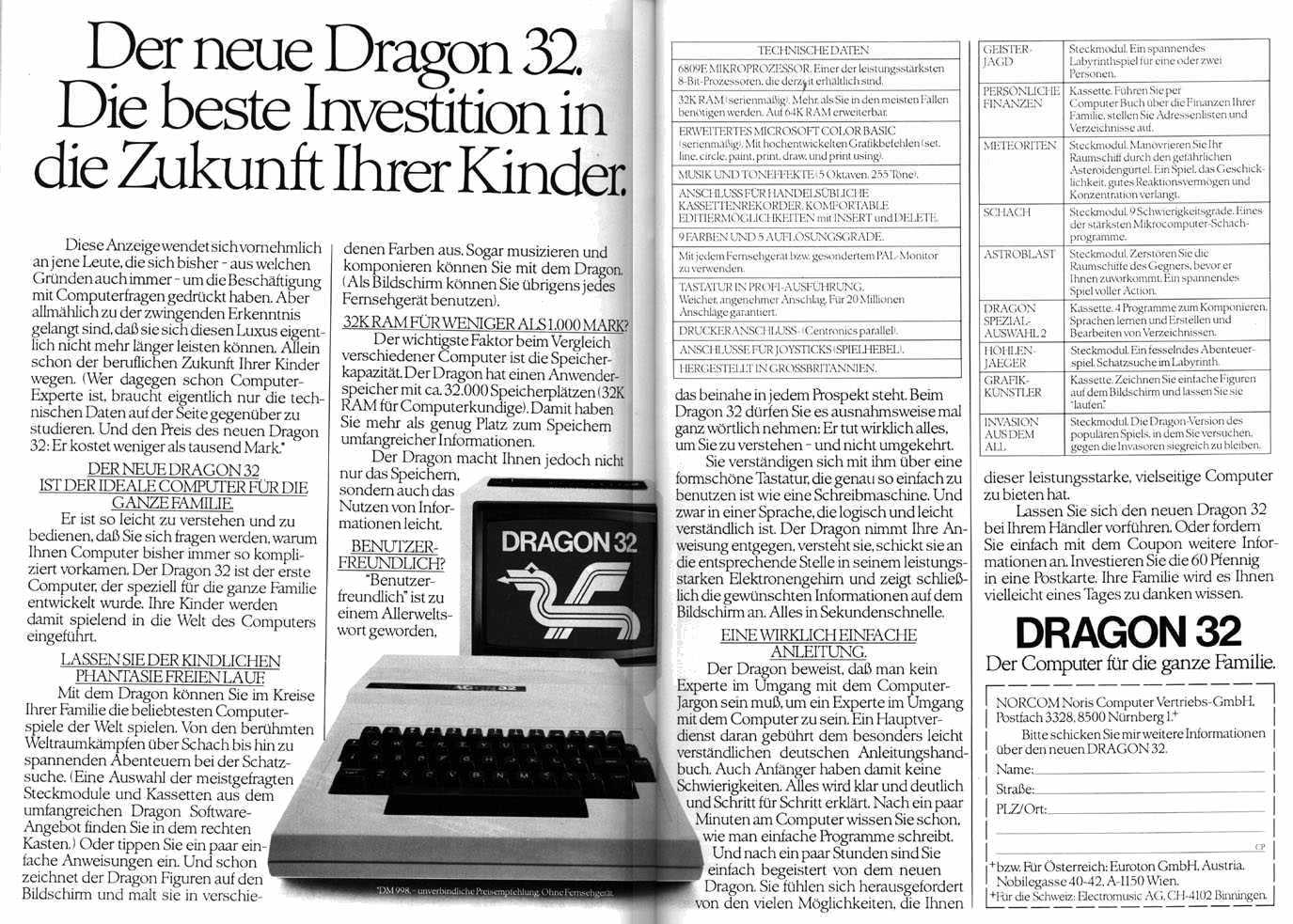 Werbung Bildergalerien Die Galerien zeigen eine kleine Auswahl der Sammlung. « Zurück zum AlbumDragon Data Dragon 32Dragon 32Dragon 32Dragon 32 (1)Dragon 32 (1)Dragon 32 (2)Dragon 32 (2)Dragon 64Dragon 64